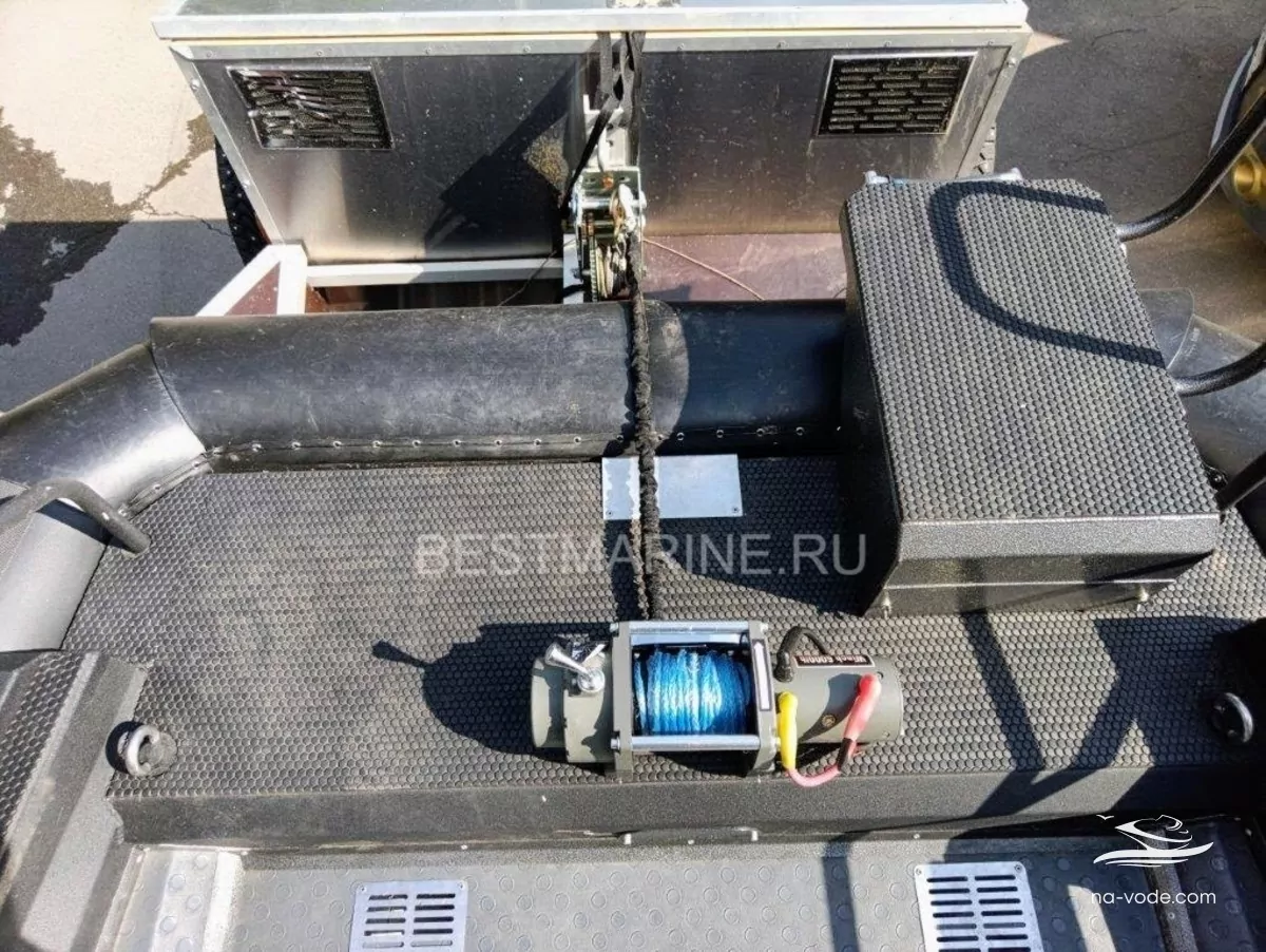 Продается в комплекте с прицепом! Аэролодка Север 650 в первую очередь ориентирована на комфорт пассажиров, просторный кокпит, который имеет П-образный ряд сидений, вмещает до 8 чел. (с комфортом 6) с возможностью разложить сиденья и боковые рундуки в спальное место на 3-4 человека. Особенностью данной аэролодки является ее кокпит, вы можете взять большую компанию на отдых или в путешествие и так же использовать лодку для заброски людей в труднодоступные места для работы. Год выпуска – 2022 Производство - Россия, Красноярск Грузоподъемность – до 1500 кг Имеет грузовую площадку 1.9 х 1.7 м для удобного расположения груза и вещей (чтобы не загружать вещами салон). Двигатель - Toyota 1UZ-FE (213.2 кВт/290 л.с.) Наработка - 22 м/ч Максимальная скорость без нагрузки по воде – до 120 км/ч Максимальная скорость без нагрузки по льду – до 150 км/ч Расход топлива – 35-70 л/ч Категория сложности - IV разряд III Количество водонепроницаемых отсеков – 7 Максимальная высота волны – 1.2 м Минимальный надводный борт – 0.5 м Масса укомплектованного судна – 1240 кг Максимальная осадка – 0.3 м В базовом исполнении вы получаете полностью готовую к всесезонной эксплуатации аэролодку конструкции «Севера», с цельносварным алюминиевым корпусом с ветровым стеклом и комфортной посадкой, к которому для дополнительной жесткости и безопасности приварена цельносварная алюминиевая рама. Комплектация: Надувной корпус лодки из высокопрочной полиуретановой ткани Цельносварной алюминиевый корпус Двигатель на продольно-поперечной раме Цельносварная алюминиевая защита воздушного винта (ограждение) Воздушный винт Комплект защиты днища На панели управления: замок зажигания рукоятка управлением дроссельной заслонкой (газом) кнопка аварийного выключения зажигания с чекой тумблеры управления системами двигателя и бортовой сети (тумблер переключения отопителя, включения фар, включения ходовых огней, включения дворников) прикуриватель приборы контроля систем двигателя: комплексный прибор со счетчиком моточасов и тахометром, указатель температуры двигателя, светодиодные контрольные лампы давления масла в двигателе, перегрева двигателя и зарядки АКБ, указатель уровня топлива в баке Два мягких морских кресла Бардачок перед пассажирским креслом Мягкое сплошное сидение со спинкой Топливный бак - 1 шт. (285 л) Передние, боковые и дверные стекла Стеклоочиститель - 1 шт. Аккумулятор - 1 шт. Ходовые огни - комплект Шест - 1 шт. Установлены 2 глушителя, за счёт которых значительно снижена шумность мотора. В базовую комплектацию не входят. Телескопическая лестница на носу Электрическая лебёдка Тауэр 4 фары Держатели для спиннингов Прицеп дооборудован и имеет: - бензиновый генератор - спереди установлен большой ящик для вещей - сделаны съёмные направляющие для удобной загрузки аэролодки